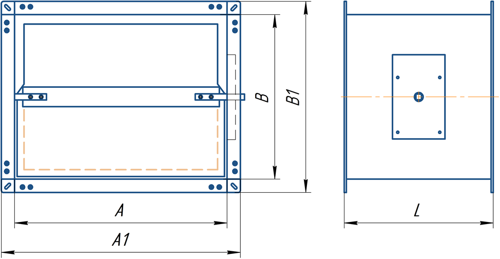 Размер Ах В- соответствуют основным присоединительным размерам трубопроводов прямоугольного сечения
