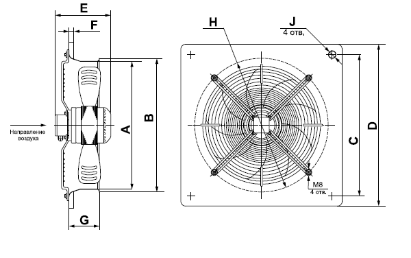 | Модель вентилятора | Размеры, мм | ||||||||