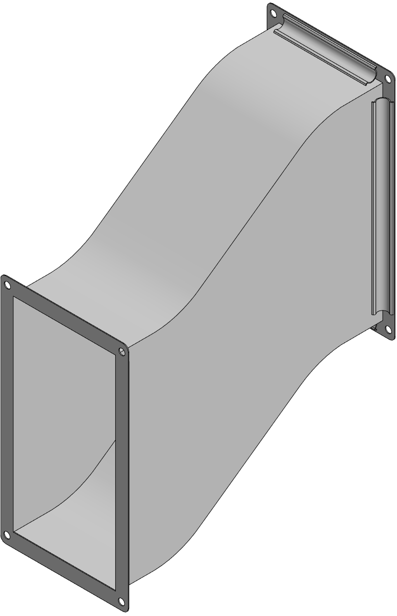 Утка для прямоугольного воздуховода - элемент сетевой вентиляции, используемый в прямоугольных каналах сложной конфигурации в случаях, когда трубы смещены по продольной оси относительно друг друга.